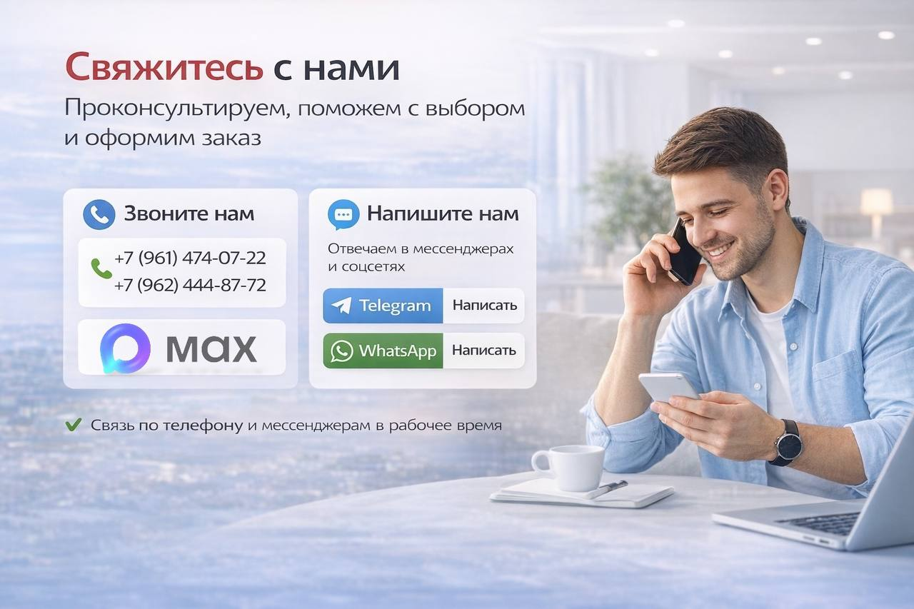 Мы всегда на связи и готовы помочь с выбором товара, оформлением заказа и доставкой. Связь по телефону
