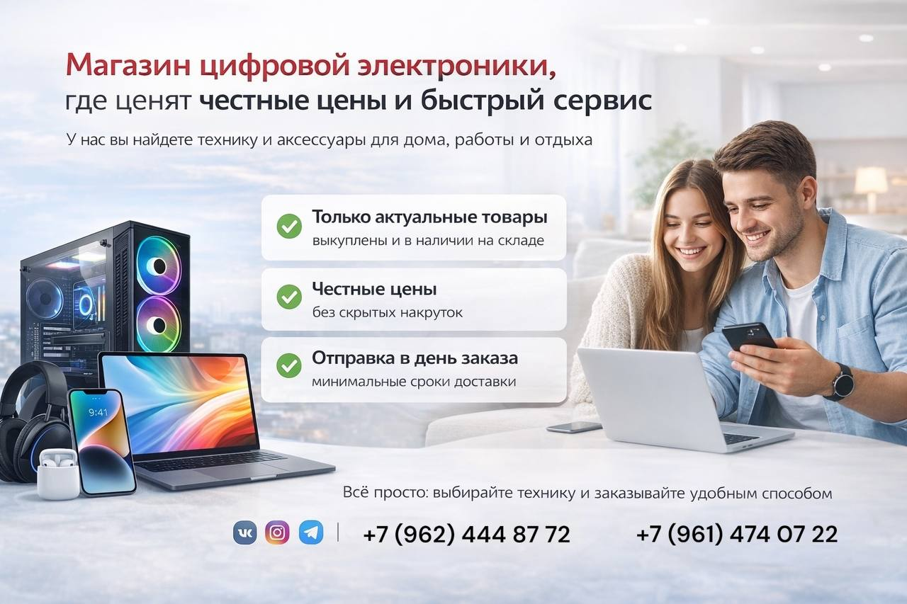 Мы — магазин цифровой электроники, где ценят честные цены, реальное наличие и быстрый сервис.