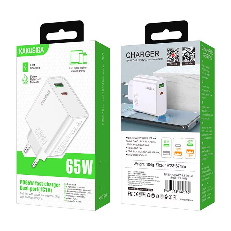 Зарядный блок Kakusiga KSC-934 (Tapy-C+USB / 65w)